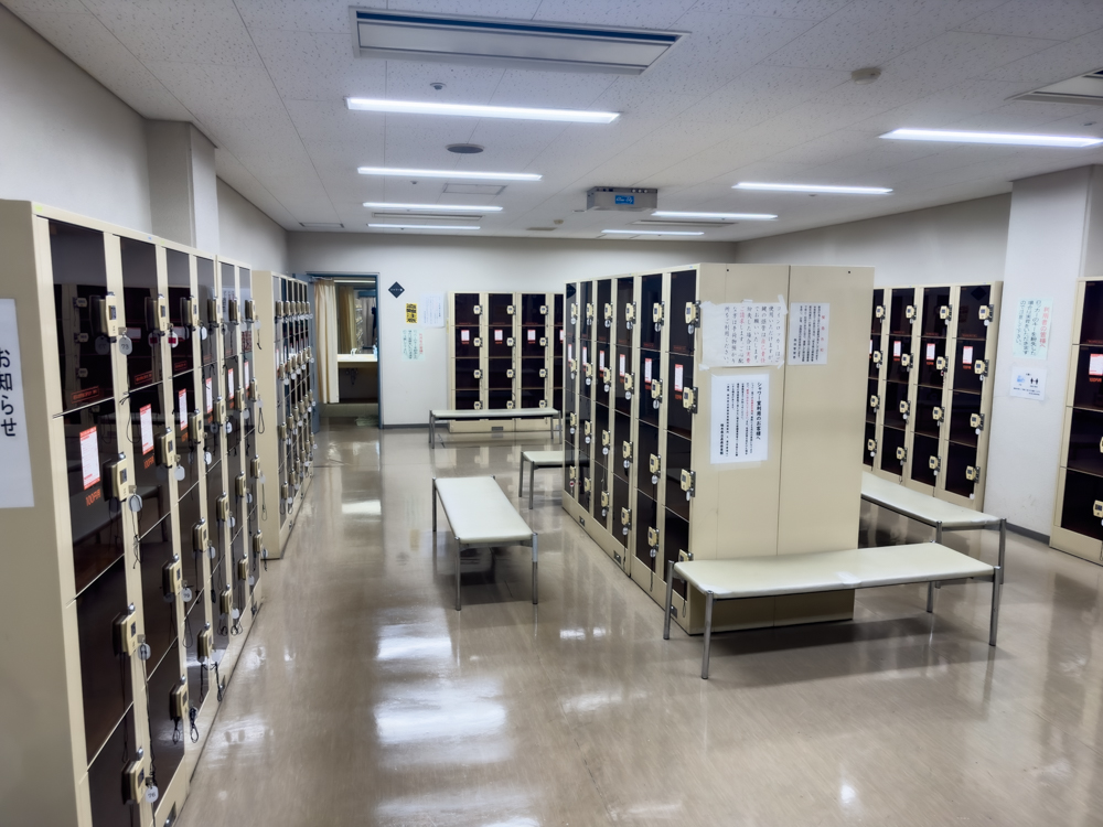 ロッカー室は広々としています。鍵付きのロッカーなので貴重品管理も安心です。