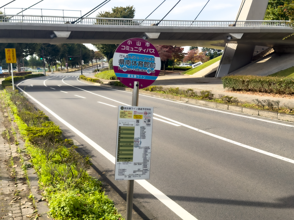 広い駐車場があり車で来館も可能ですが、小山駅から小山市コミュニティバス(おーバス)も出ています。アクセスがよいのはありがたいですね。