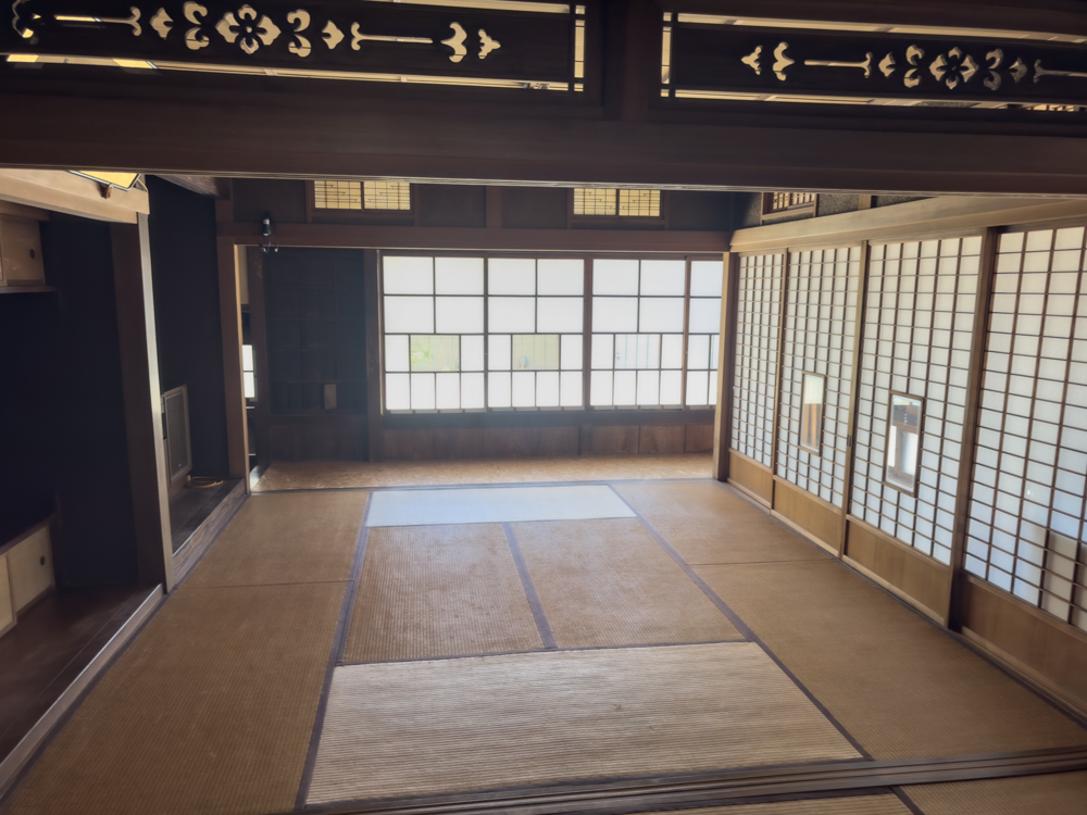 こちらは心地よい畳張りの広々としたスペースです。和の趣を感じる空間には柔らかな光が差し込み、リラックスした雰囲気に包まれていますね。