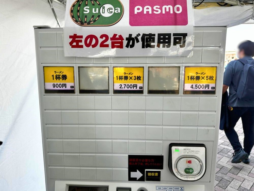 ラーメンはすべて1杯900円。会場内の食券売り場で、全店舗共通のチケットを事前に購入します。