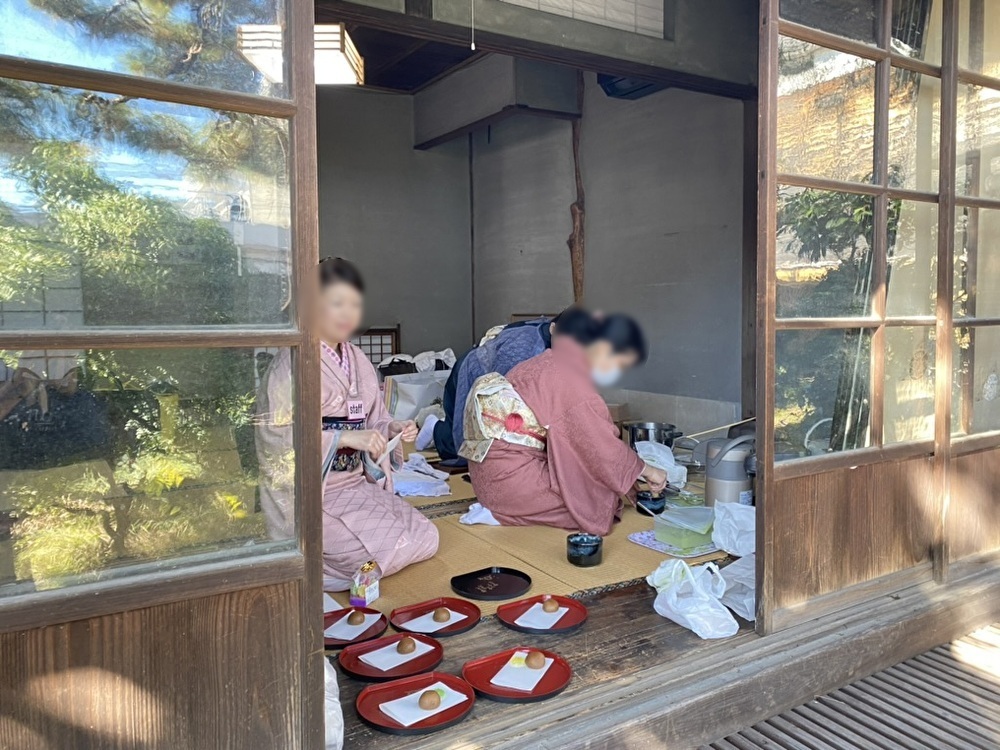今回のきものの日は、どんな人が参加されているかしらと周りをちらちら見てみました。七五三ということもあり、ご家族で着付けをされていた地元の方やシニア世代の方々、お友達やご夫婦で古き良き時代をしのぶ方など。