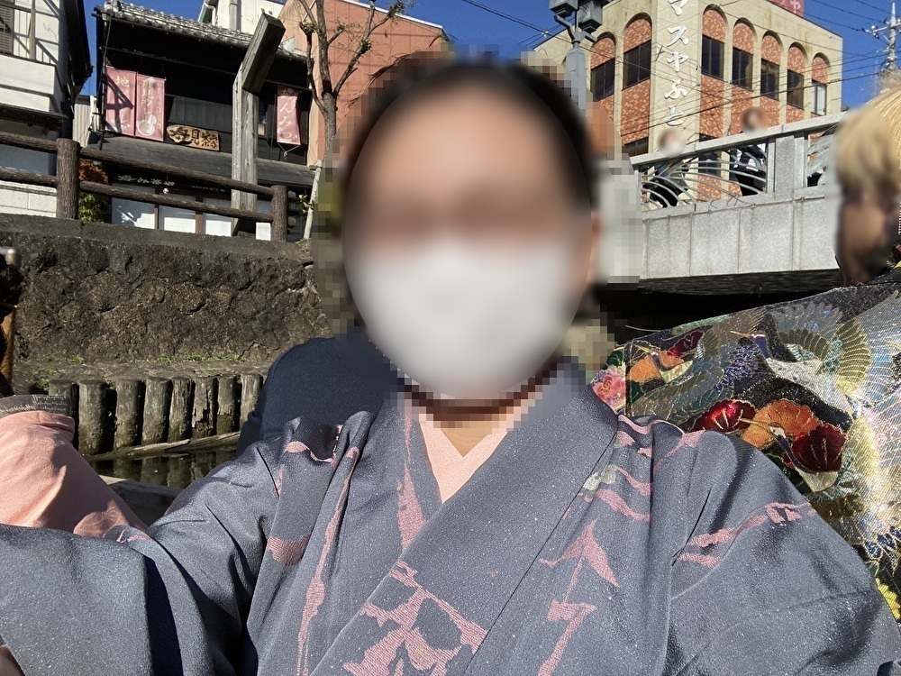 乗船しているみなさんも着物姿。川沿いの観光客からカメラを向けられた回数が多かったです。なんだか緊張しました。