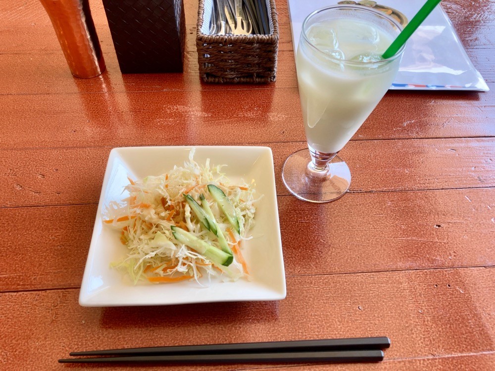 カレーセットを注文した私の元に、サラダとドリンクが運ばれてきました。