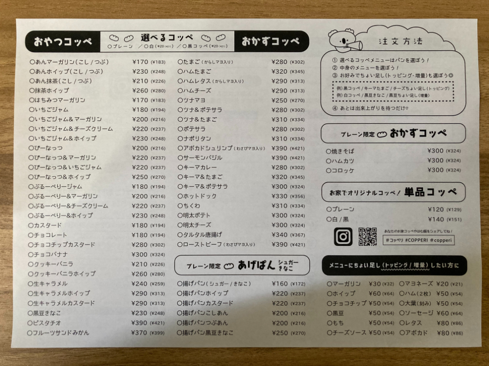 コッペパンにちなんだお店の名前がかわいらしいです。