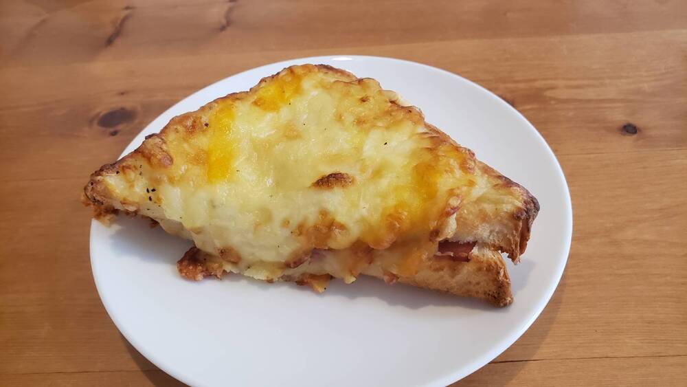 カリカリに焼けた外側のチーズと、内側のベシャメルソースのしみ込んだパンとハムが最高!お持ち帰りの際は、ぜひトースターで温めてみてください。
