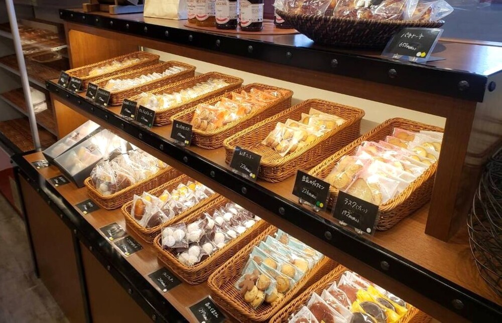 JR自治医大駅から車で6分ほどのところにあるこちらのお店は、田園地帯の真ん中に位置するパン屋さんです。地元民から愛され、営業中は常にお客さんが途切れないほどの人気店で、来店時も店内はパンを買い求めるお客さんでいっぱい!