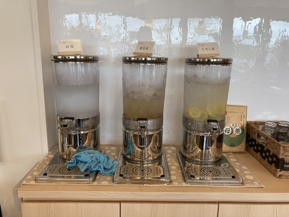 セルフサービスで、お冷、薬母茶、レモン水がありました。