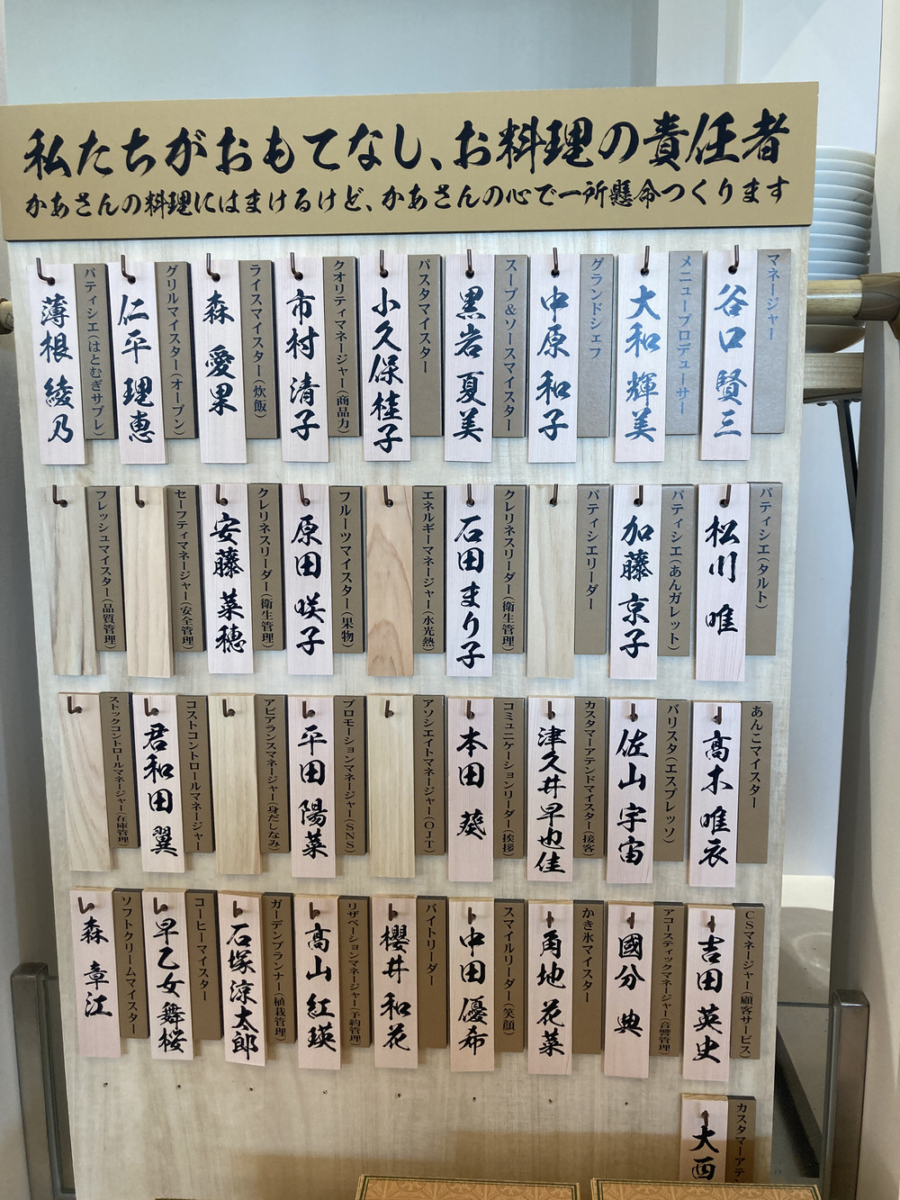 こちらはそれぞれの責任者ということで、店員さんのお名前が掲載されていました。