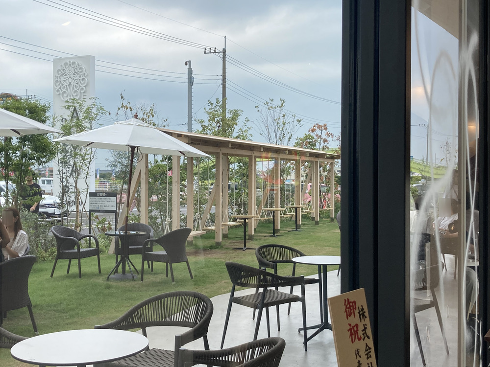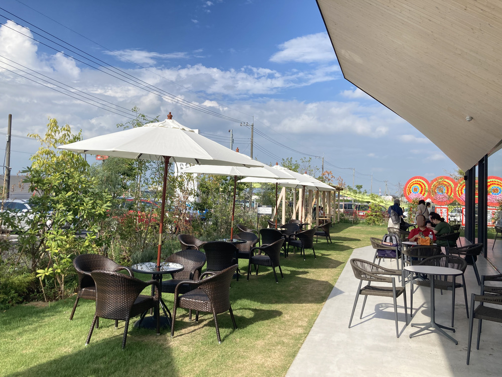 第2駐車場からお店の出入り口に向かう途中は、テラス席がありました。