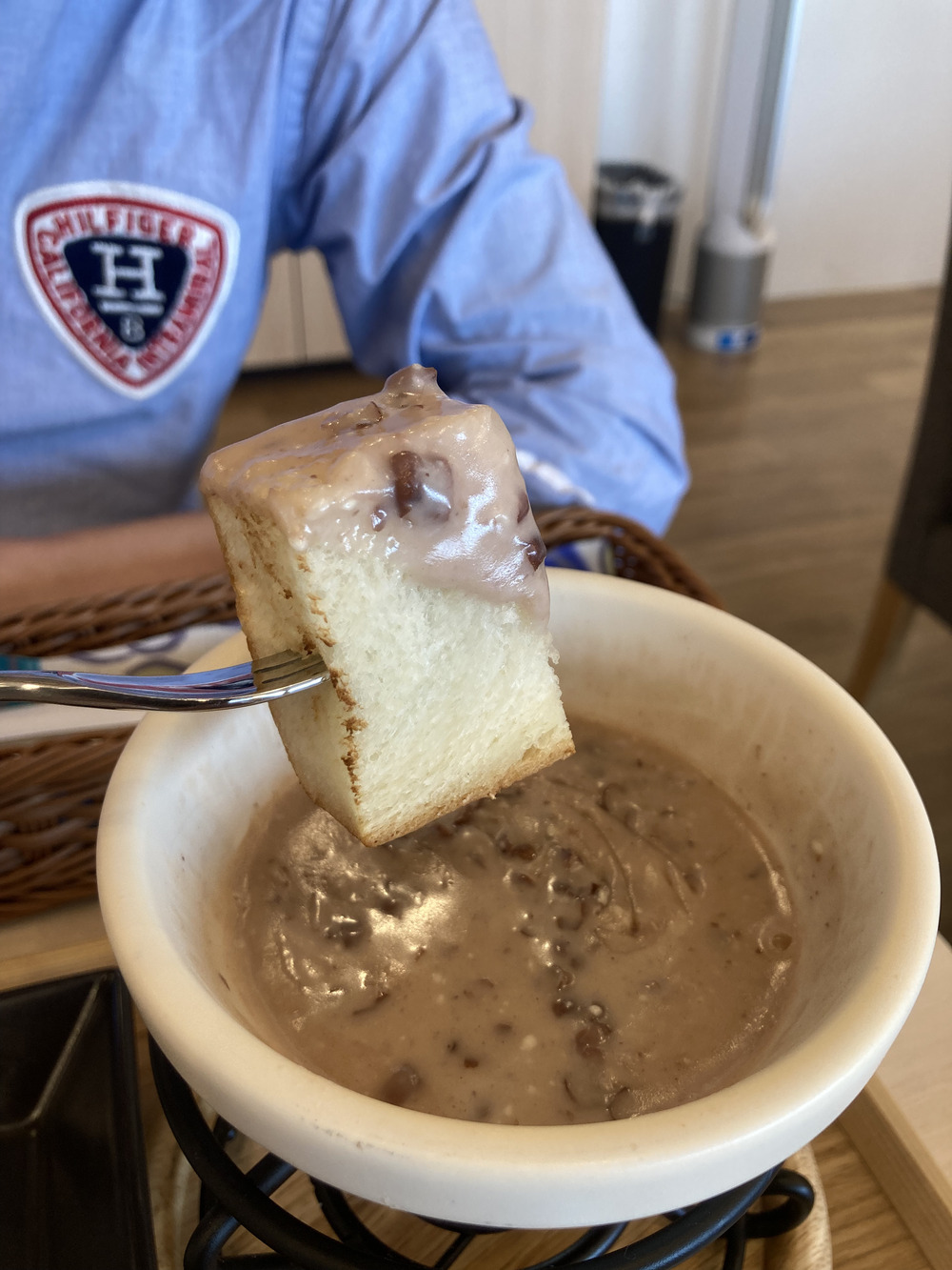 あんことチーズが混ざったソースにフォンデュしていただきます。