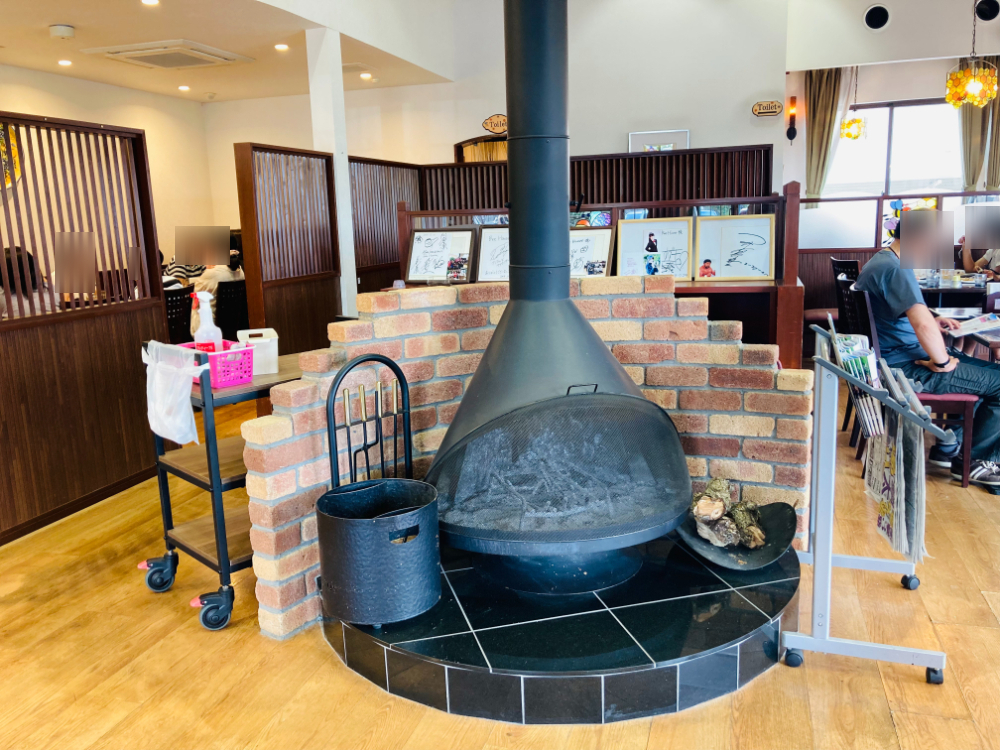 今は暖かい時期だから火は付いていなかったですが、炭が燃えた跡があったので、冬になると暖炉が付いてるところも見れると思います。