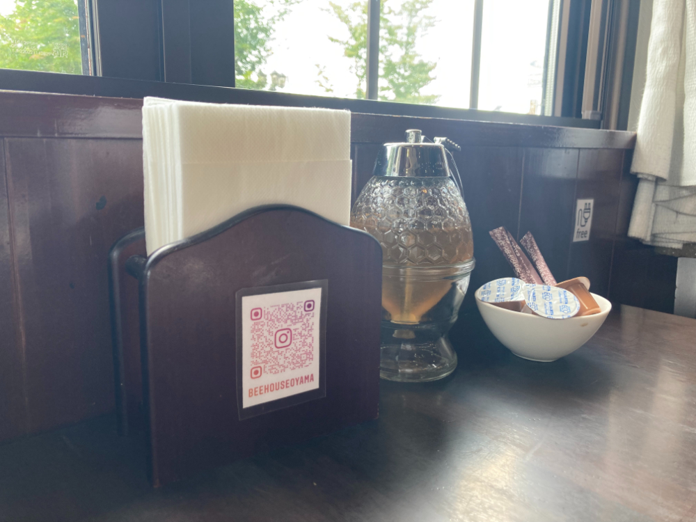 席には、はちみつがおいてあり、デザートにかけ放題だそうです。