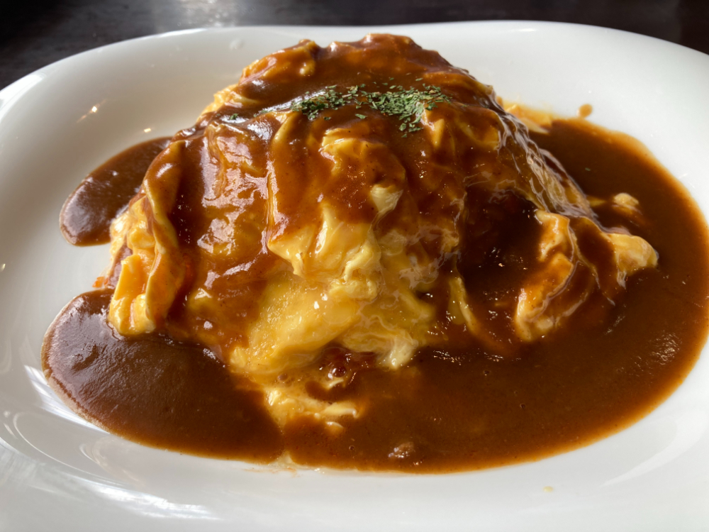 食べてみると、甘めのデミグラスソースとフワフワの卵、チキンライスが合わさりとてもおいしかったです。