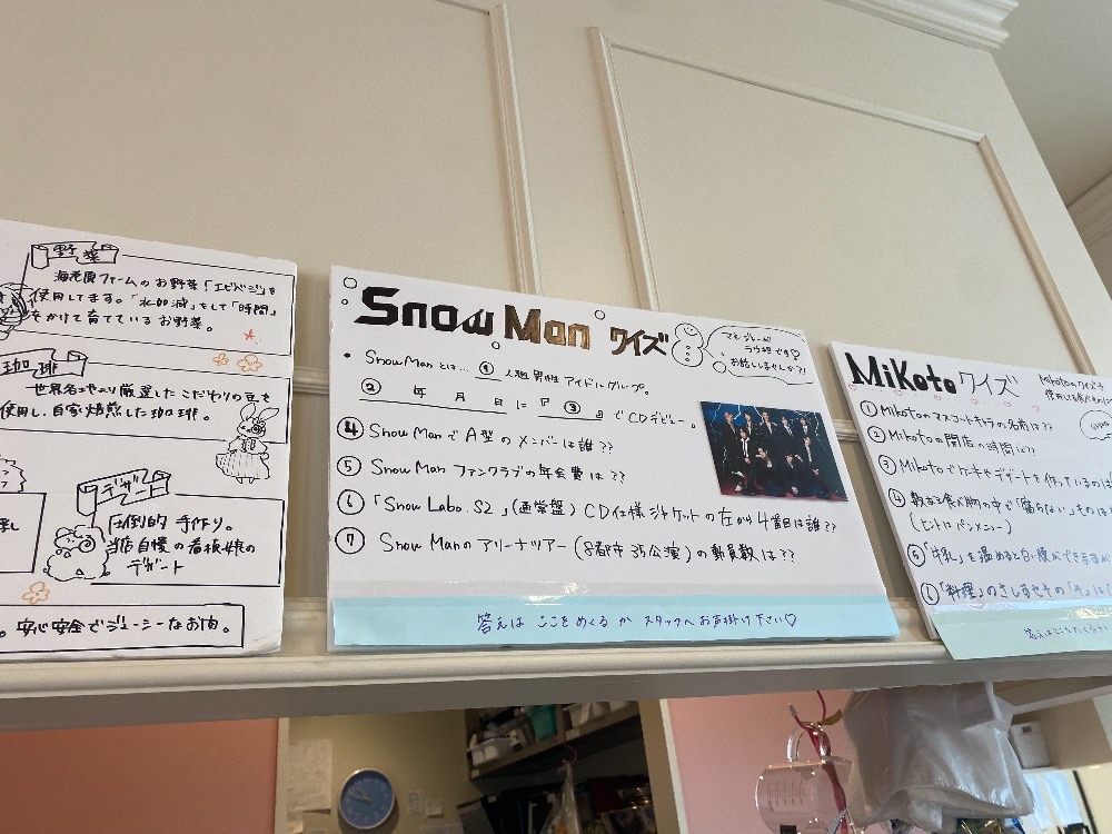 そして気になるのが、お店の壁に貼られたSnow Manクイズです。