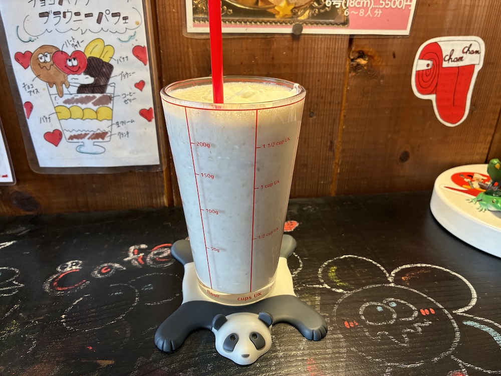 ココナッツバナナシェイクはグラスが大きくてメモリがついています。