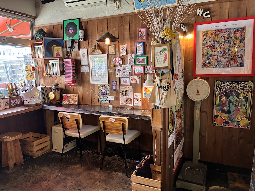 カフェにたくさん飾られたカラフルでかわいいイラストは、店長さんがかいていらっしゃるそうです。見ていて楽しくてステキですね。