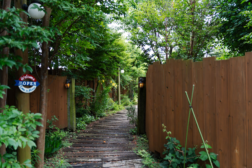 店舗入り口へつながるアプローチが素敵。この先を早く見てみたい気持ちと、この路地を楽しみたい気持ちでワクワクが止まりません。今回は小山市乙女にある、この素敵なカフェをご紹介いたします。