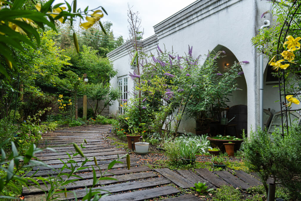 店舗が見えた瞬間から、感動。この日は雨だったのですが、グリーンが艶々とし、お庭全体がとても優雅でした。