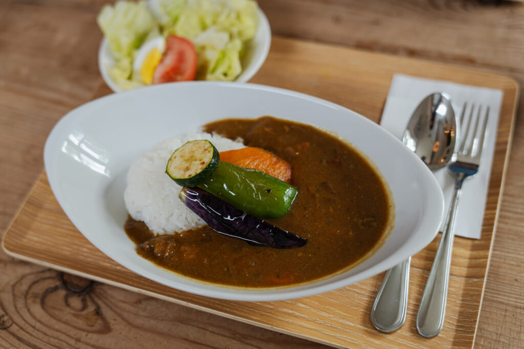 ナツメカレーはサラダとドリンク付きで1,390円。やさしいお味のなかにスパイスが効いていて、酸味が印象的。
