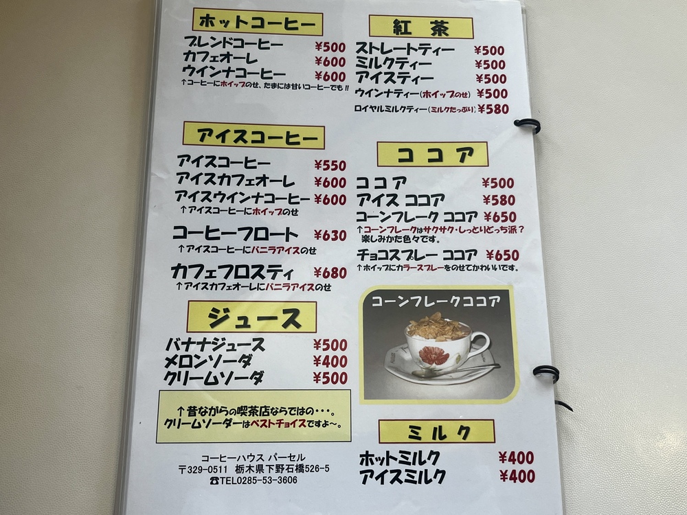 石橋駅から車で約5分、文教通り沿いの石橋高等学校前にある下野市で長く愛されている喫茶店「COFFEE HOUSE PARCEL(コーヒーハウスパーセル)」。