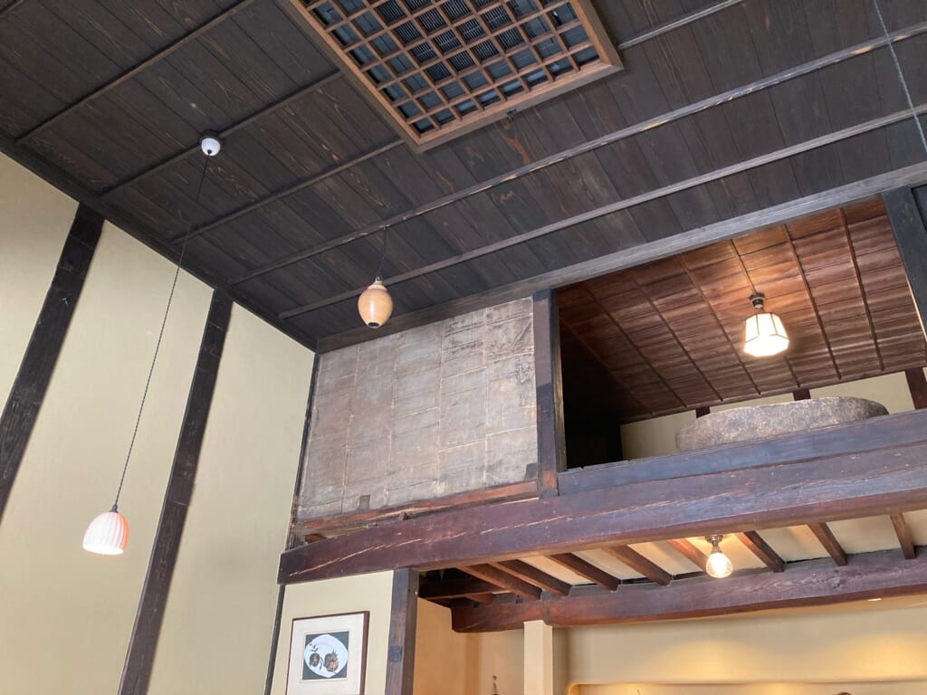 吹き抜けになっているのに、開放感というよりも閉塞感を感じるインテリアが不思議です。昔ながらの木の色合いや少し暗めの照明がほどよく落ち着けます。また、柱時計の音が心地よく響きます。この空間だけ、時間の流れがゆったりとしてるような。。。そんな気持ちになります。