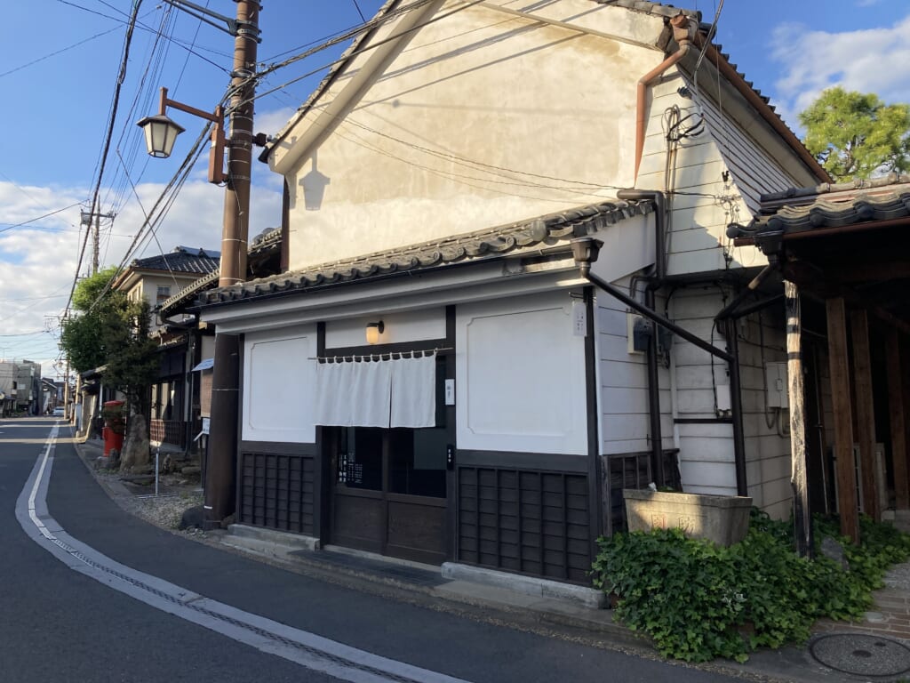 日光例幣使街道には、蔵がたくさん立ち並んでいて、どこも目を惹くおしゃれな外観です。中でも、この「物華」さんは暖簾で店内がほとんど見えない佇まいが、より期待感をアップさせてくれます。