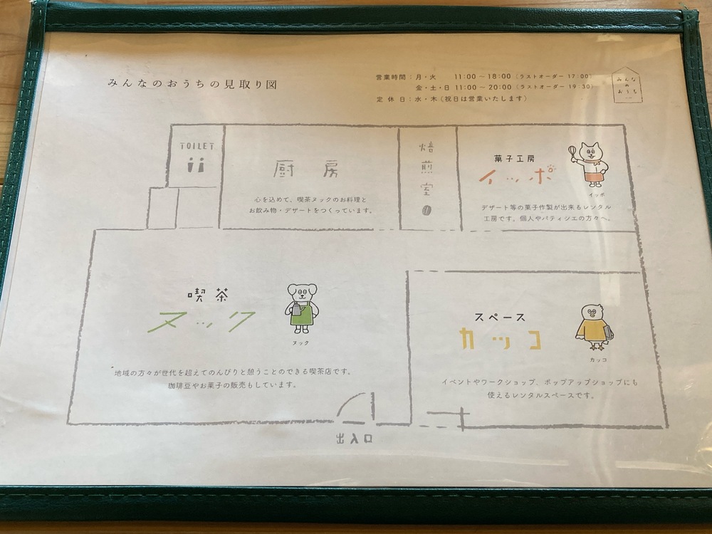 この建物内で、今回訪れた「喫茶 ヌック」の他に、お菓子作りができる「菓子工房 イッポ」とさまざまなイベントに使える「スペース カッコ」としてレンタルスペースも運営されているそう。