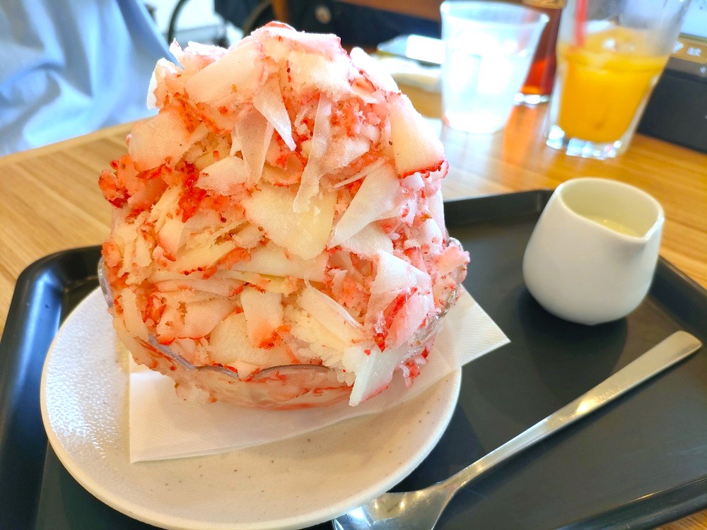 スカイベリーを冷凍し、果肉をそのまま削ったものだとわかり、だからいちご氷なんだと納得してしまいました。