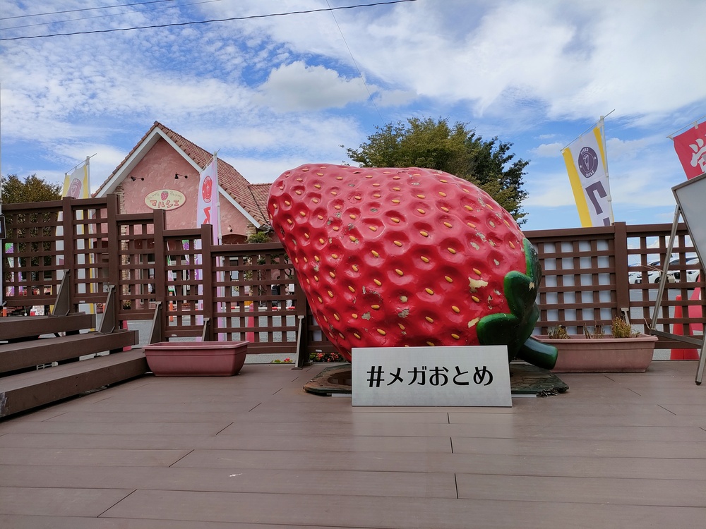 お店の外にはインスタ映えする巨大ないちごのオブジェがあり、フォトスポットにもなっています。