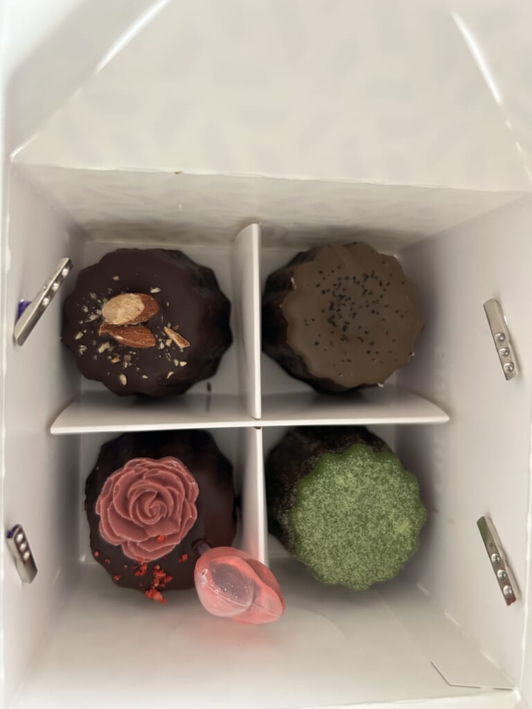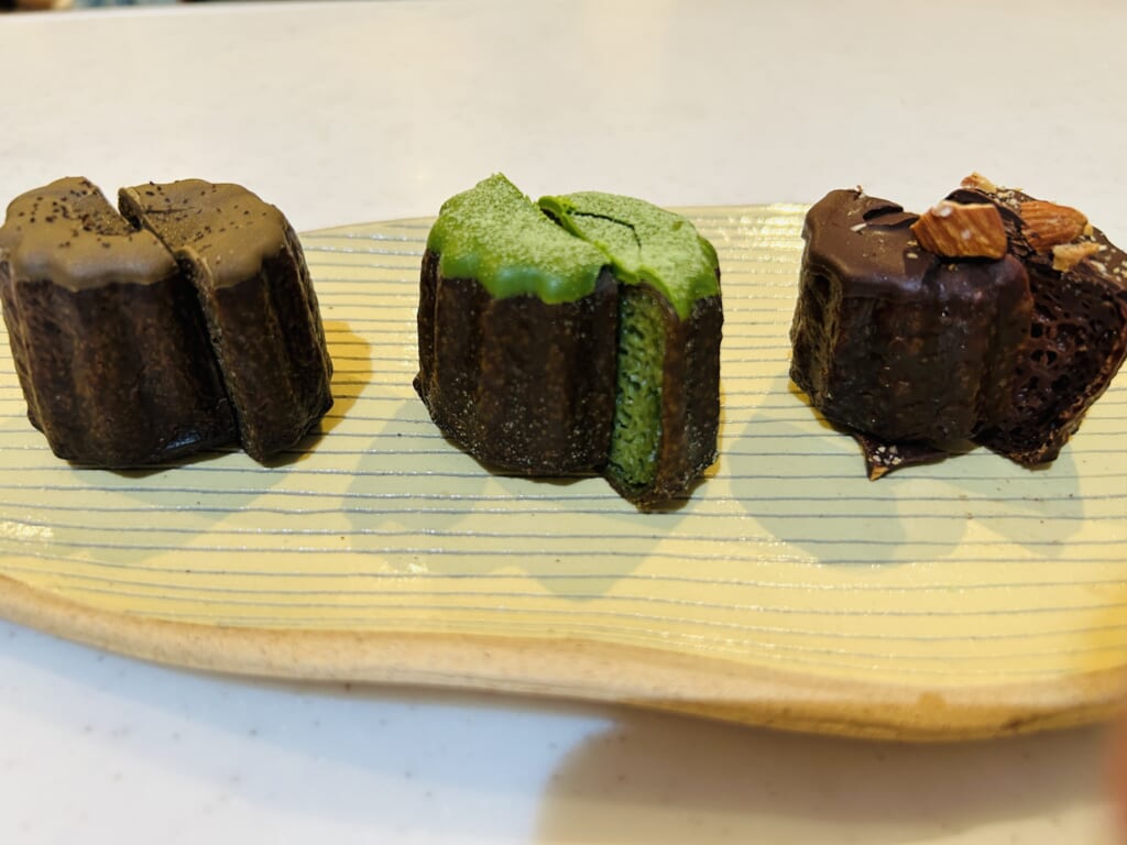 カヌレ専門店なので、さすがのおいしさです。外はカリッと、なかはモチモチの食感。少し冷やしてから食べると、上部の飾りのチョコレートがカリッとして、食感がプラスされます。どれも甘すぎずでペロリといただけます。