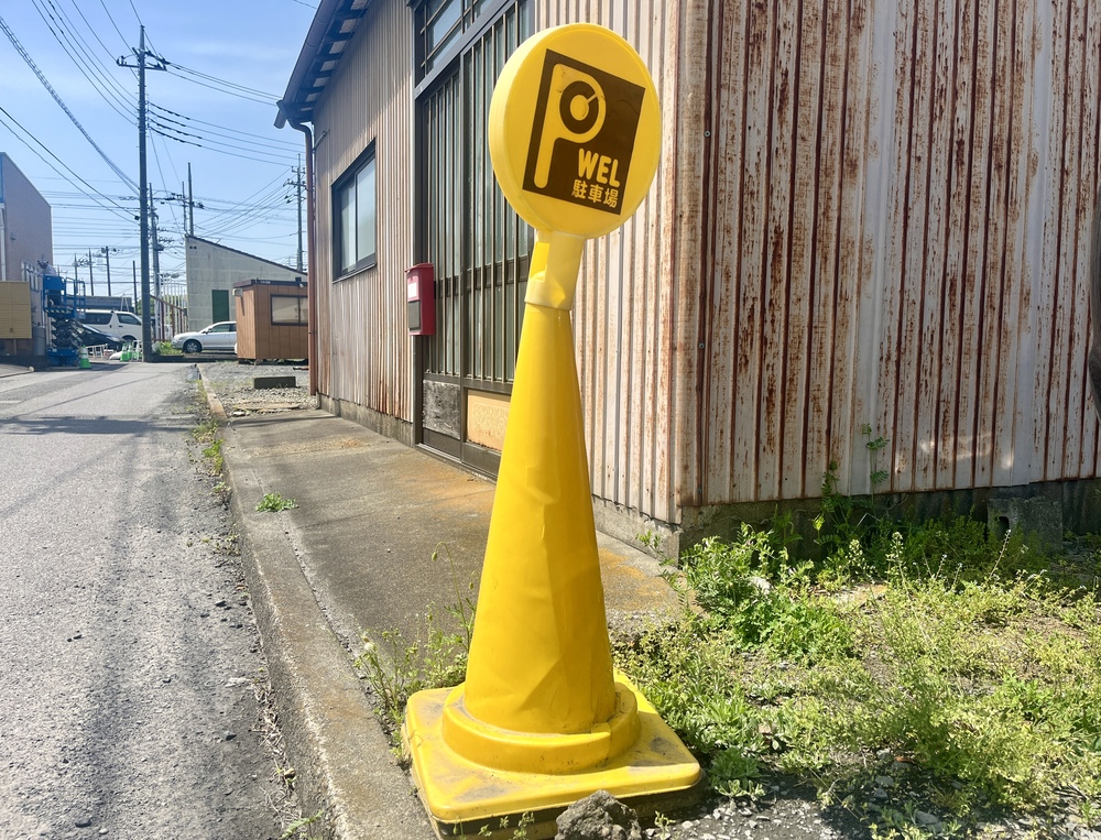 駐車場はお店の裏手にあり、黄色いカラーコーンが目印です。