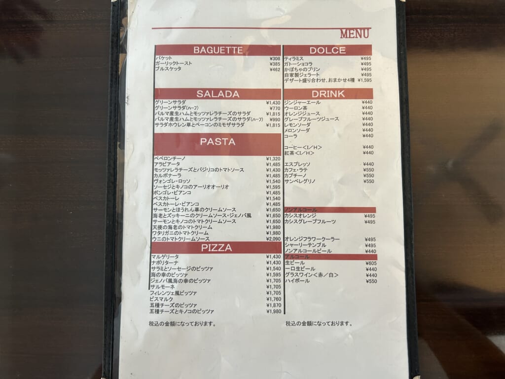 ランチメニューの他に、ピッツァやパスタなどの単品メニューがあります。この単品メニューにドリンクとミニサラダのセット(+550円)やドリンクとミニドルチェのセット(+450円)を追加することもできます。