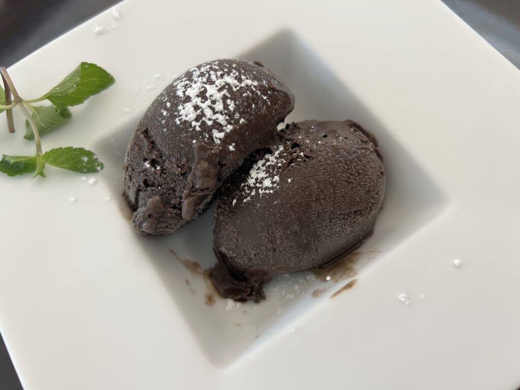 ミニドルチェはジェラート、ガトーショコラ、カボチャのプリン、ティラミスから選べ、娘はチョコレートのジェラートをチョイス(ジェラートのお味は全部で4種類ありました)。このジェラートが美味しい!さっぱりなチョコレートアイスといった感じでした。