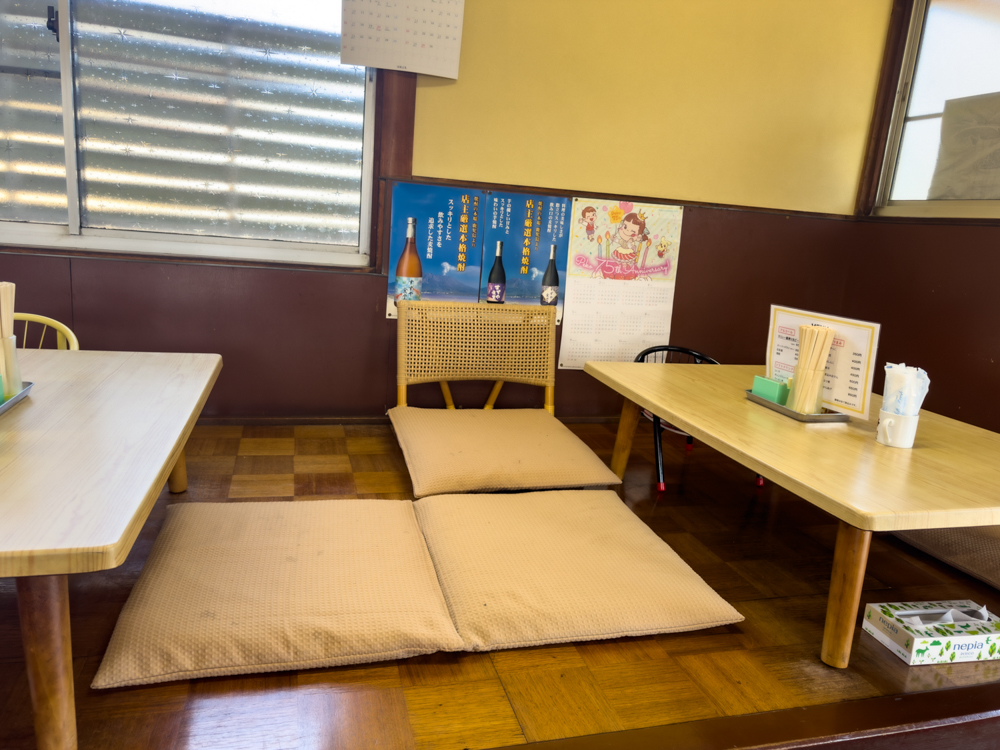 店内にはテーブル席のほかに、小上がりの座敷席もあり、意外と多くのお客さんを受け入れられる広さです。