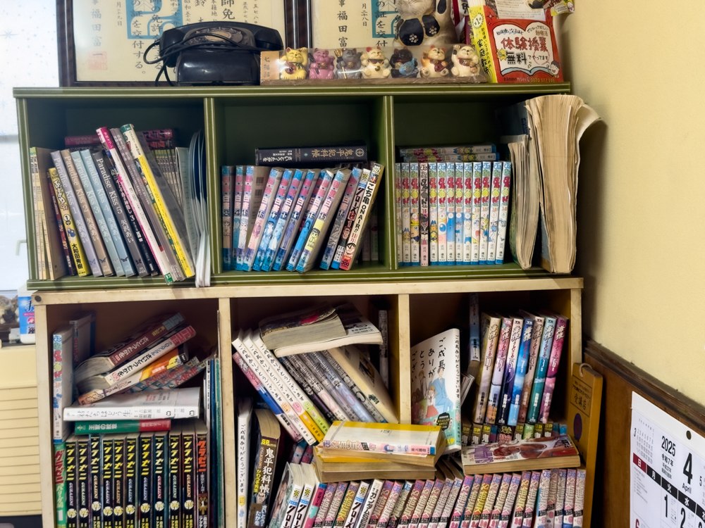 店にはたくさんの漫画が置かれていて、待ち時間も退屈せずに過ごせそうです。