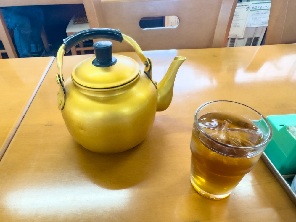 今回はお酒の代わりに、ヤカンで提供された麦茶をゆっくり味わいました。