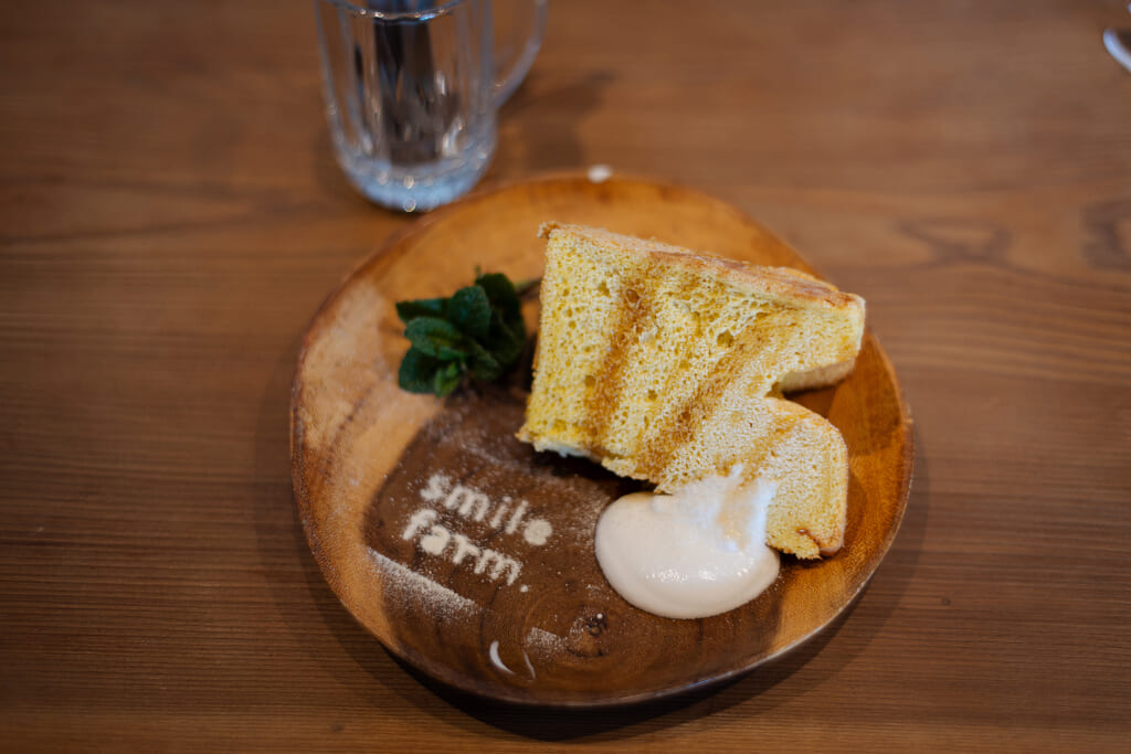 静かな田舎道なので、店舗からの景色ものどかで良いです。ひなたぼっこしたり空間を楽しみながらお料理提供を待つことができます。この空間に居いるだけで楽しい、心地よい、そんなお店が「smile farm.shanti」さんです。