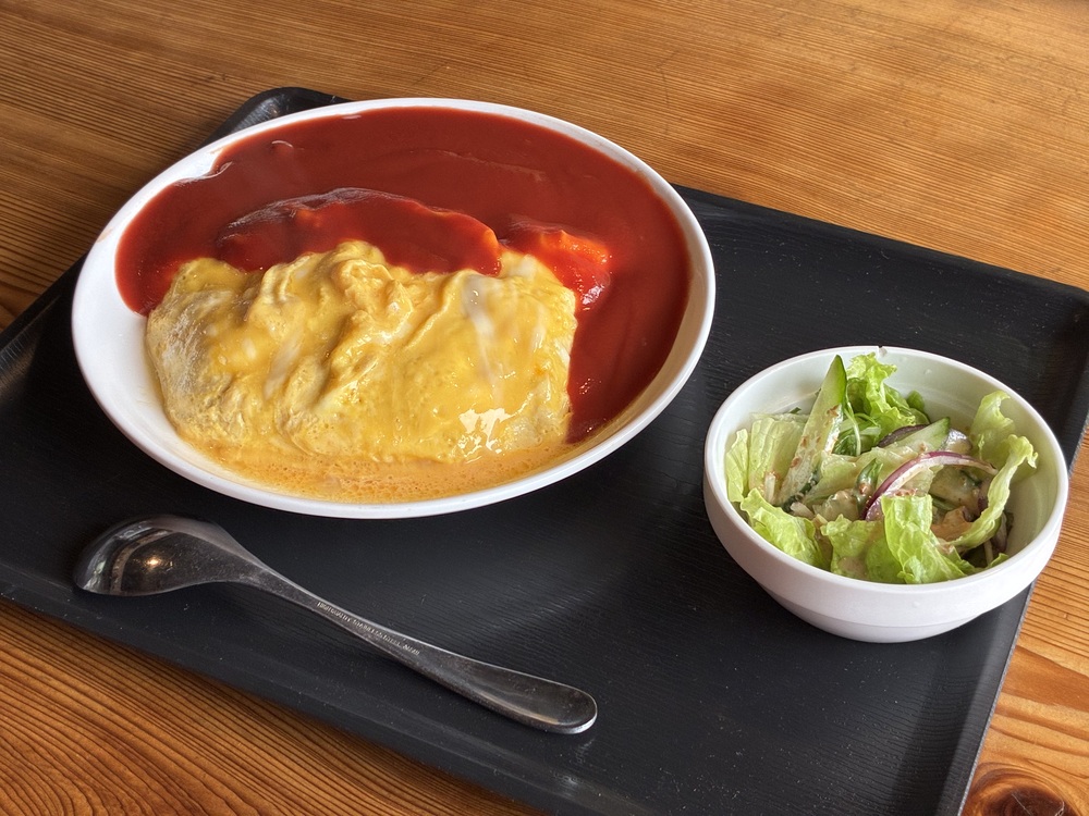 オムライスのケチャップは酸っぱさが少なくまろやかだったので、小さなお子さんと一緒に食べられるかと思います。サラダのドレッシングも食べやすいお味でした。