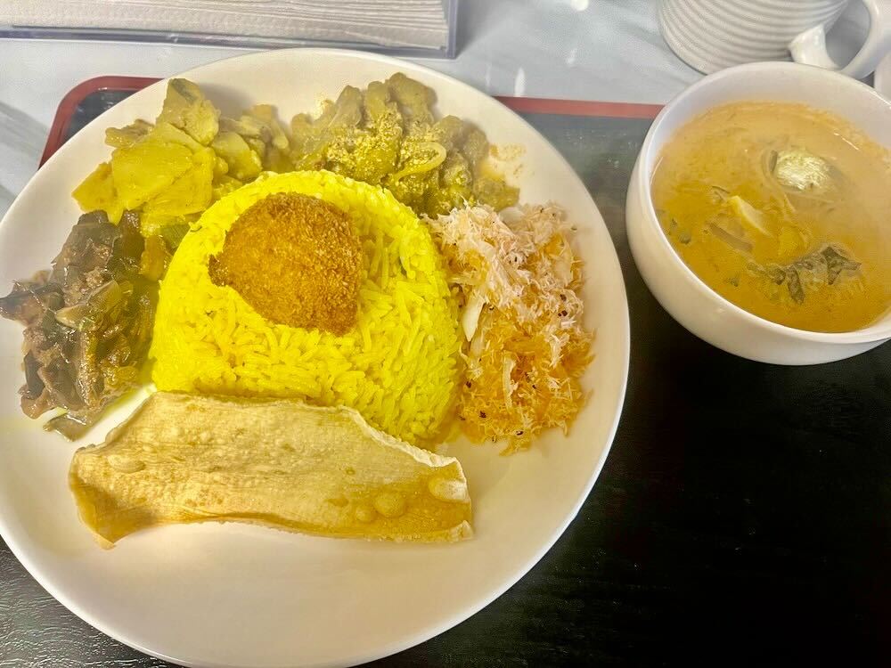 悩んだ末、おすすめのイエローライスアンドカレー+フィッシュカレーを注文しました。