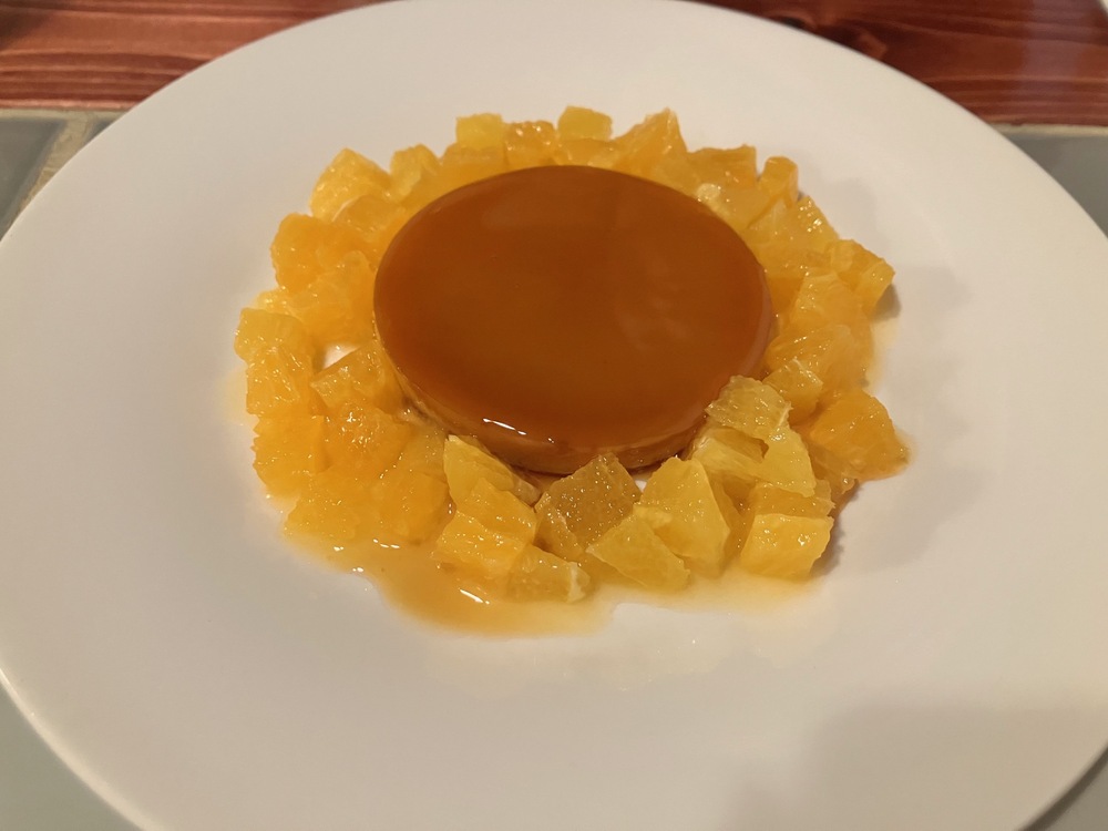 プリンだけでももちろんおいしいのですが、周りに添えられたオレンジと一緒に食べると、また違った味わいに変化しました。