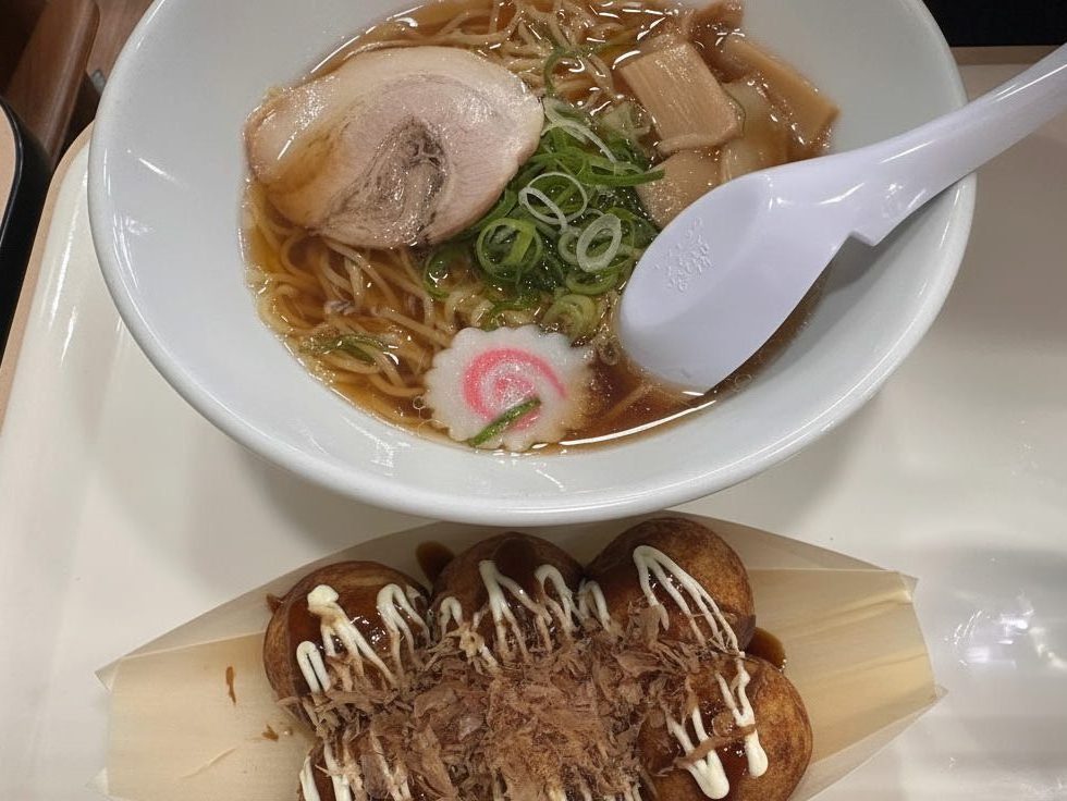 メニューはラーメンが4種類にセットメニューなどのしっかりお食事系、たこやきやたいやき、アイスなどのスナック系があります。わたしが伺った時間帯はテイクアウトの方が多かったように感じます。