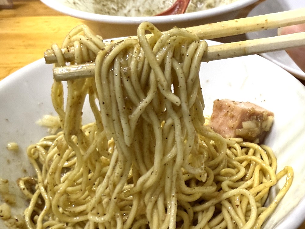 麺をリフトするとスープが一気に持ってかれるほどの絡み加減がたまりません。