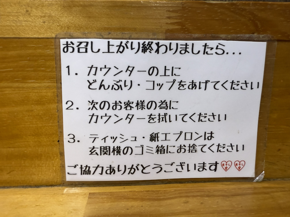 食後の所作についても説明が掲示されているので安心です。