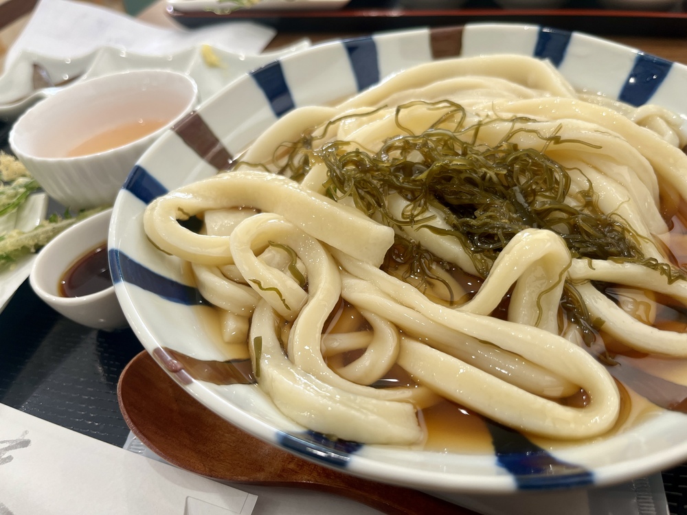 お店のこだわりでもある化学調味料を使っていない角のないお出汁と、切り昆布のとろみと、コシが強く喉越しのいいうどんがベストマッチ!
