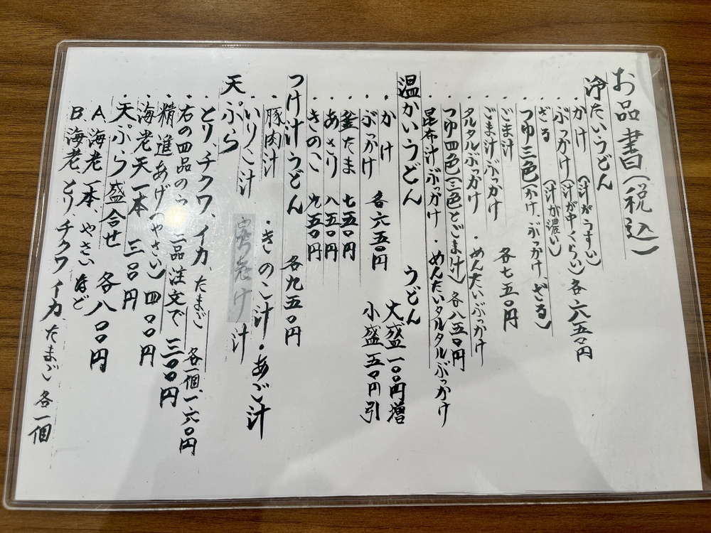 冷たいうどんから温かいうどん、つけ汁うどんまで豊富なバリエーション。そしてなんといっても税込でこのお値段はおどろきです。
