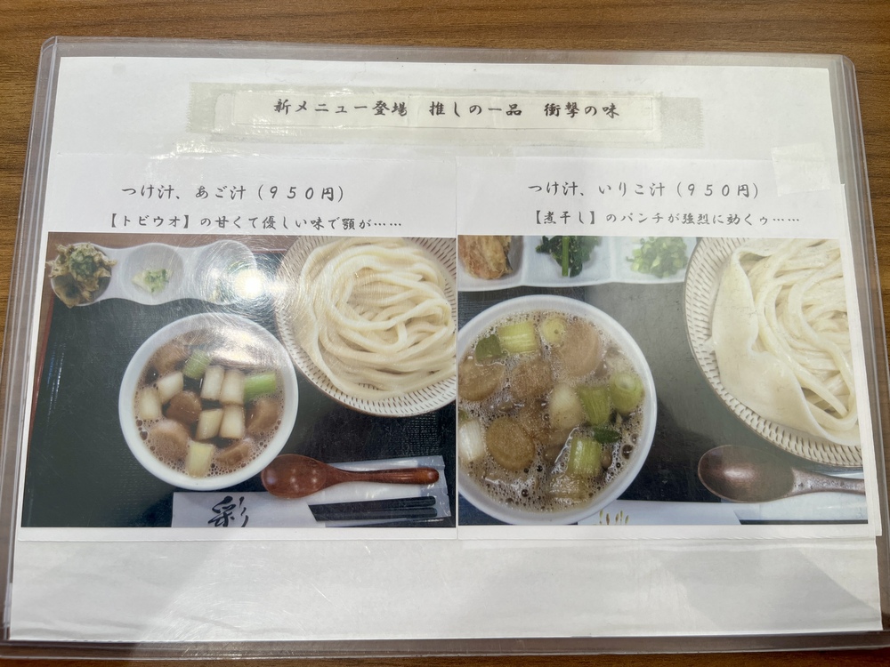店主さんは元警察官で、定年退職後に合掌松屋を開店しました。奥様と2人で営むこちらのお店は、過去にyahoo!ニュースへの掲載や県内のうどんランキング1位を獲得した名店で、うどん好きが市内外から通う人気店です。