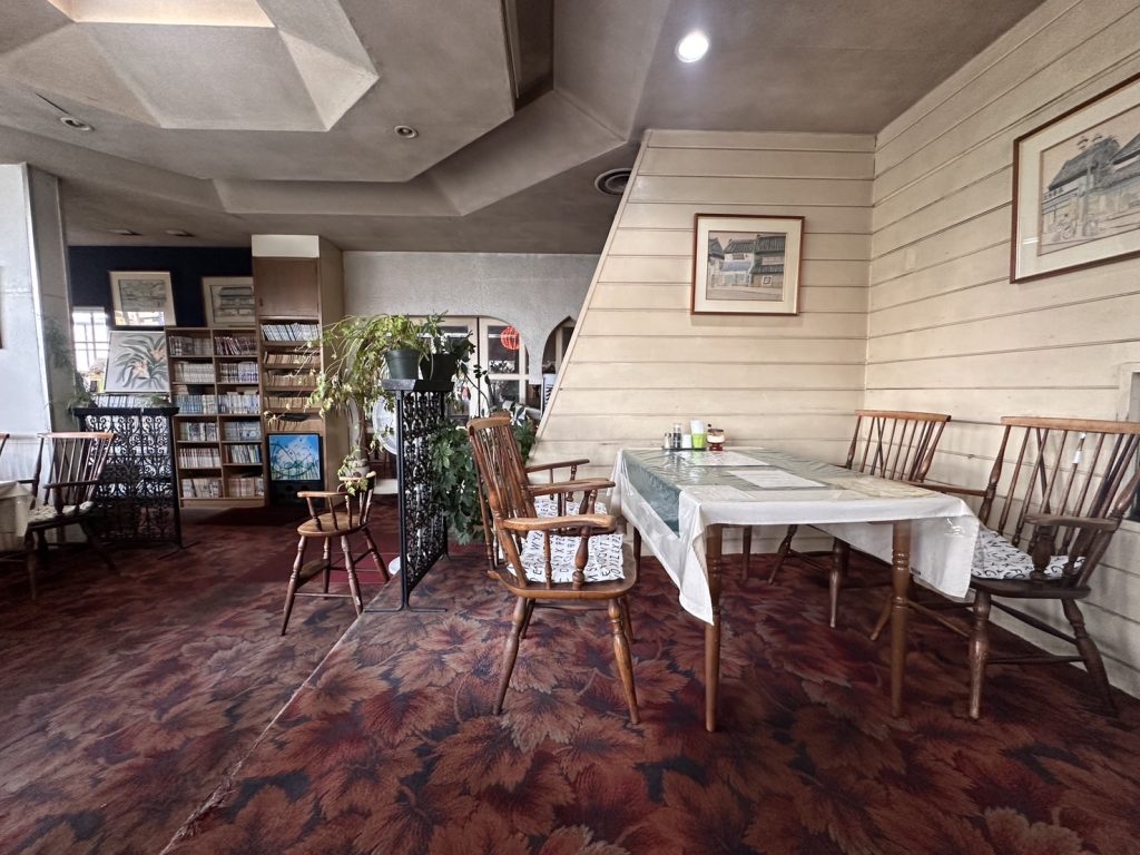 壁のあちらこちらに、蔵の街の絵が飾られています。一緒に伺った娘は、以前テレビで放送されていたドラマ「不適切にもほどがある」のタイムスリップした昭和のお店みたい!と店内全体のレトロ感に大喜びでした。