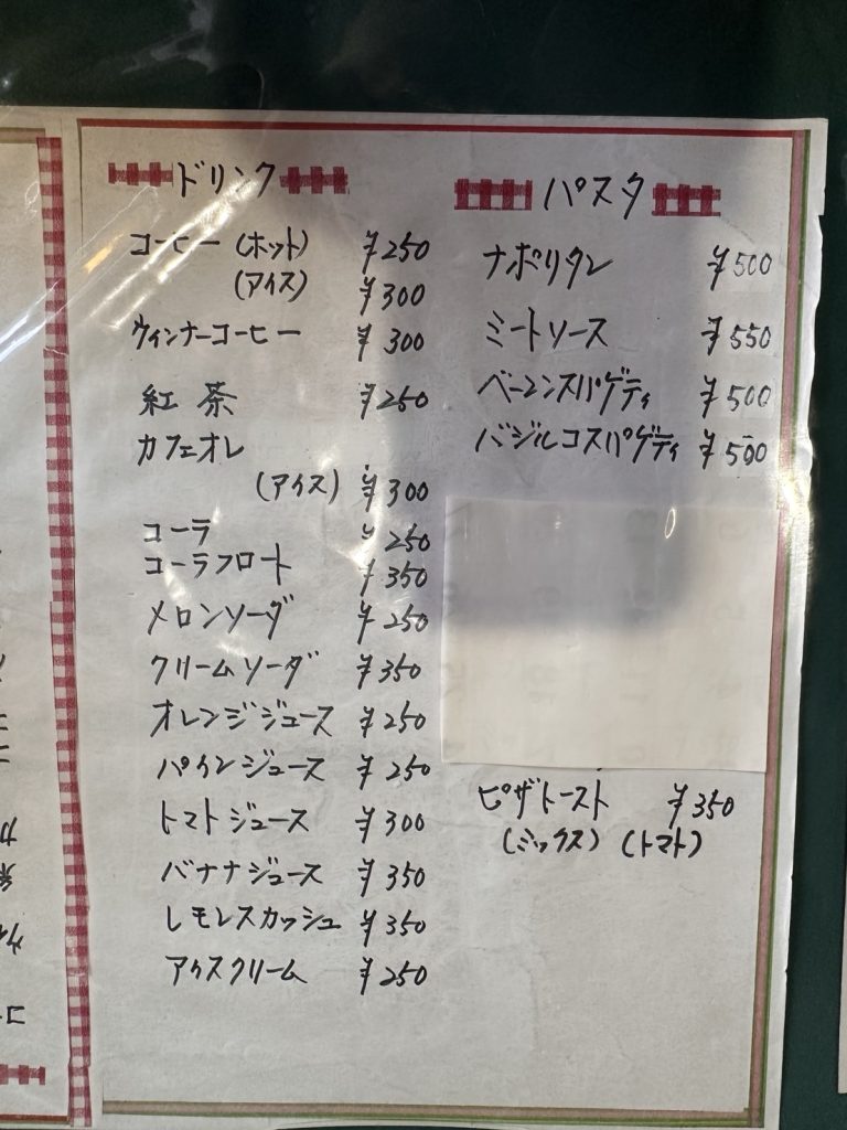 サイドメニューも、おすすめです。メロンソーダやバナナジュースが人気とのこと。どちらも250円という、これまたかなりの安価。ピザトーストも厚みがあり具材もたっぷりでおすすめです。