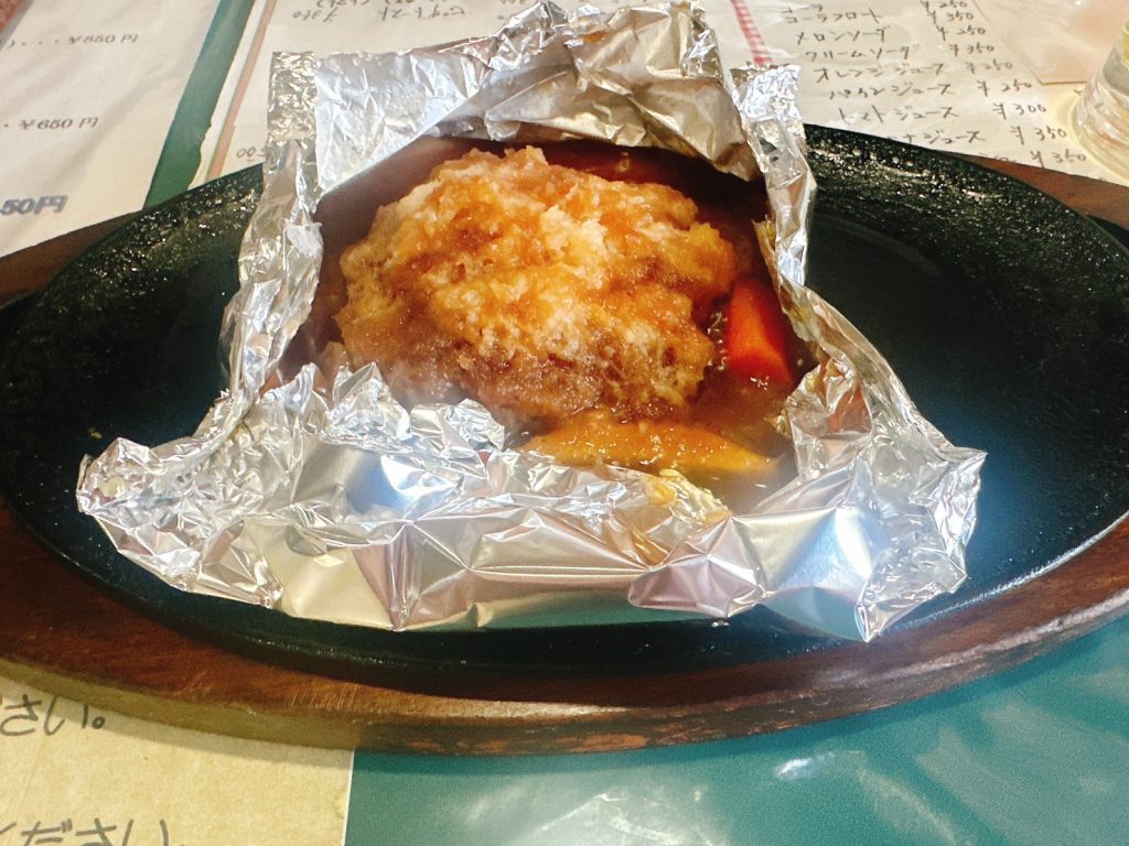 こちらは、ボルケーノハンバーグ850円。こちらはライス別。オムライスのハンバーグと同じですが、蒸し煮にしたハンバーグで、鉄板焼きよりふっくらしています。
