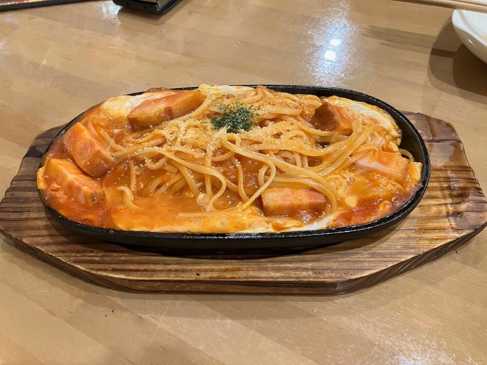 - 厚切りベーコンin鉄板ナポリタン
